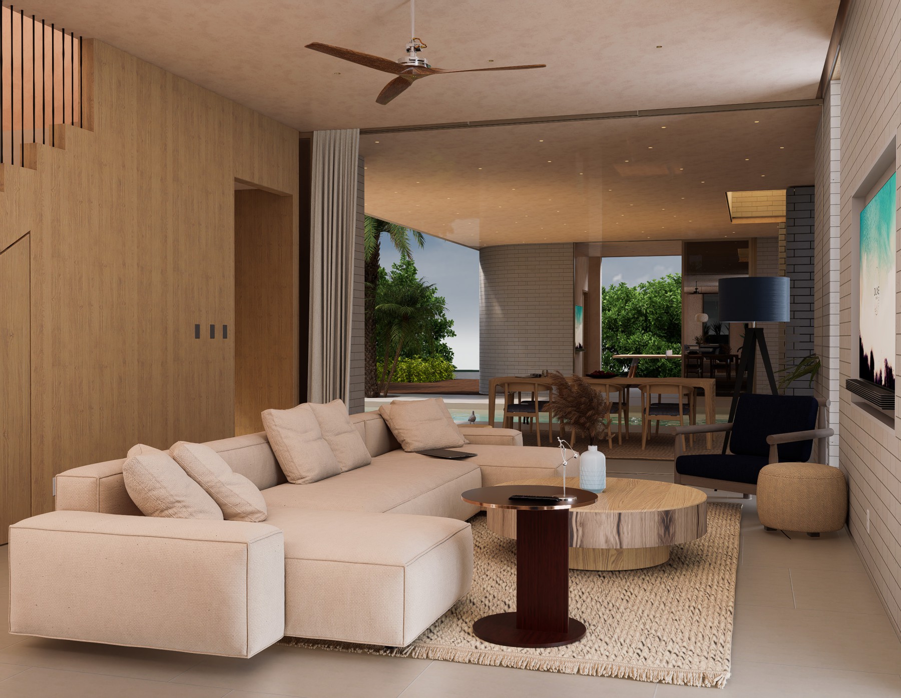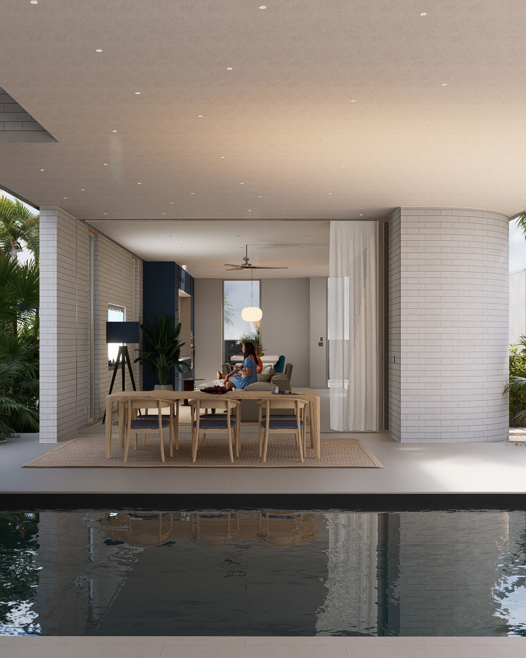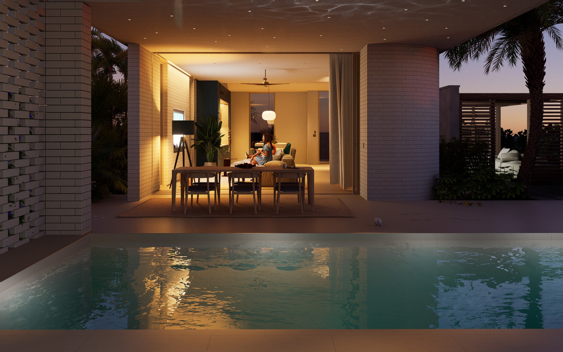 Architecture InteriorsOn a quaint 0.25-acre inland plot in Leeward, Providenciales, Dune Design embraced the challenge of crafting an exceptional rental villa. By ingeniously utilizing the setbacks, we maximized the space to include luxurious amenities such as a TV lounge, a firepit, and a putting green.
