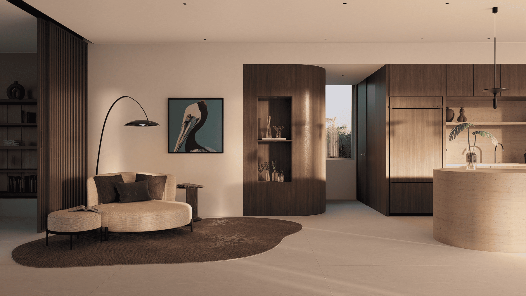 The palette reflects this same respect for nature—light stone, warm wood, and soft, natural tones bring the outdoors in and create a sense of calm throughout the space. We wanted every detail to feel thoughtful and intentional, designed for both comfort and sustainability.